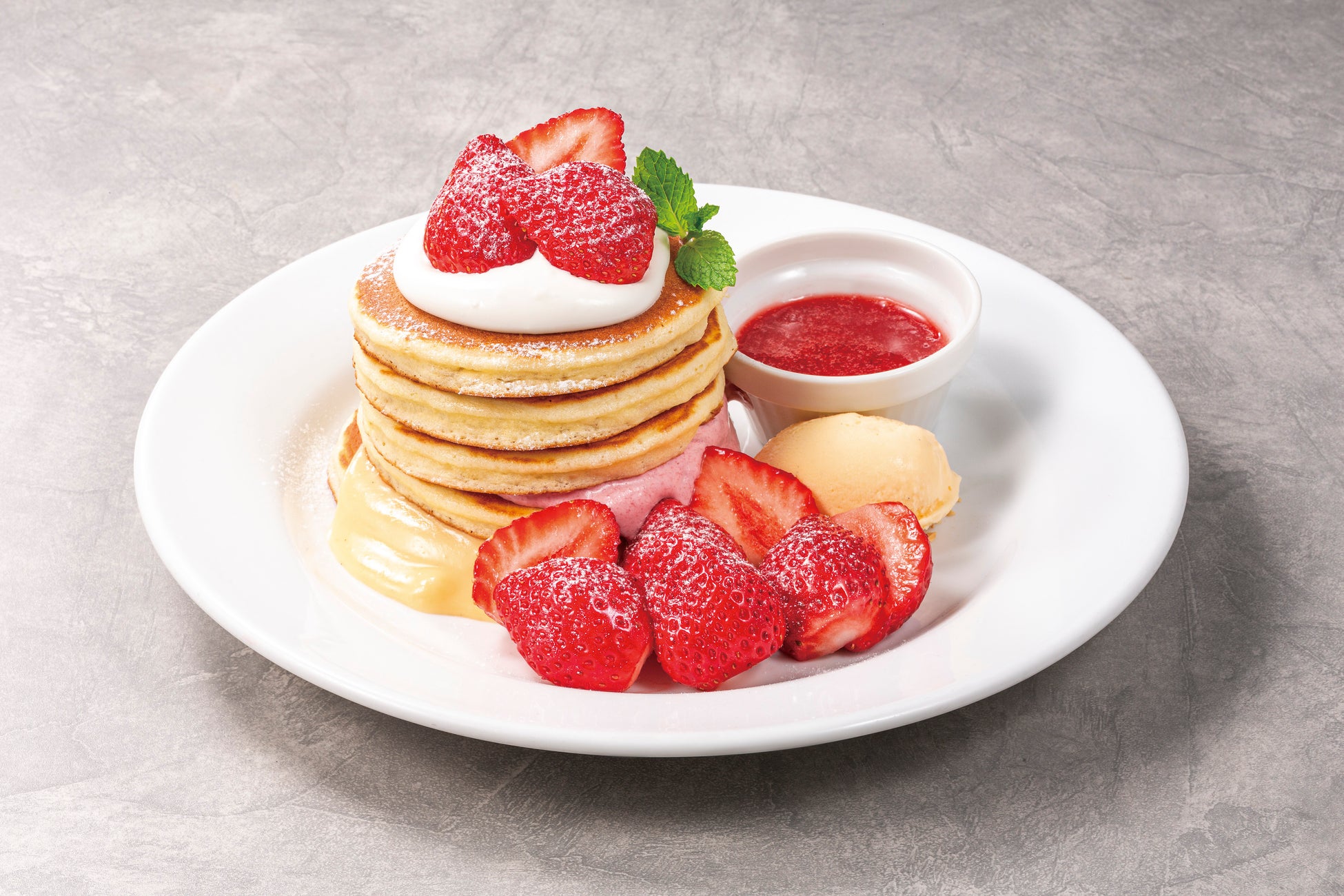 あまおうのバターミルクパンケーキ5枚~ハニーベリーソース 1,490円(税込1,639円)