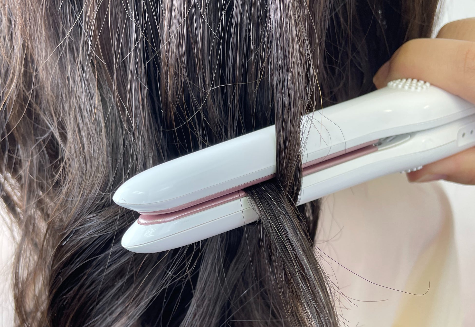 プレートも上下がぴったり重なるようにカーブを描き、髪を挟むだけで程よいテンションが加わるため、ヘアアイロンに不慣れでも押しつぶしてしまう心配は不要。