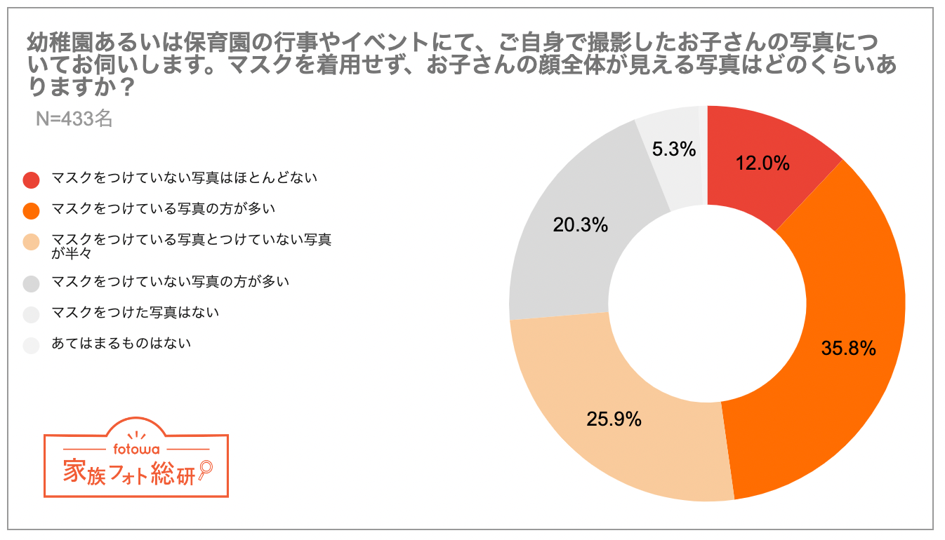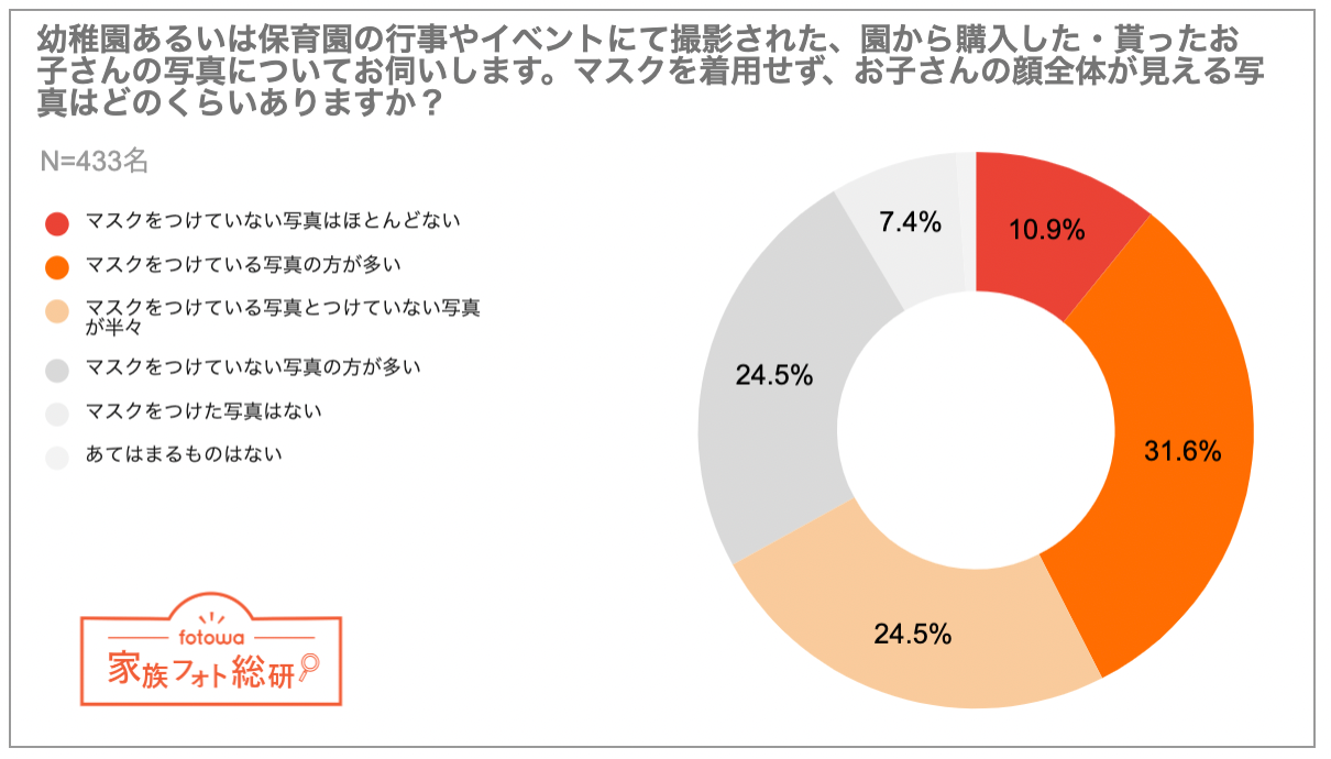 - 幼稚園・保育園の子どもの写真「マスクをつけている写真の方が多い」が約4割