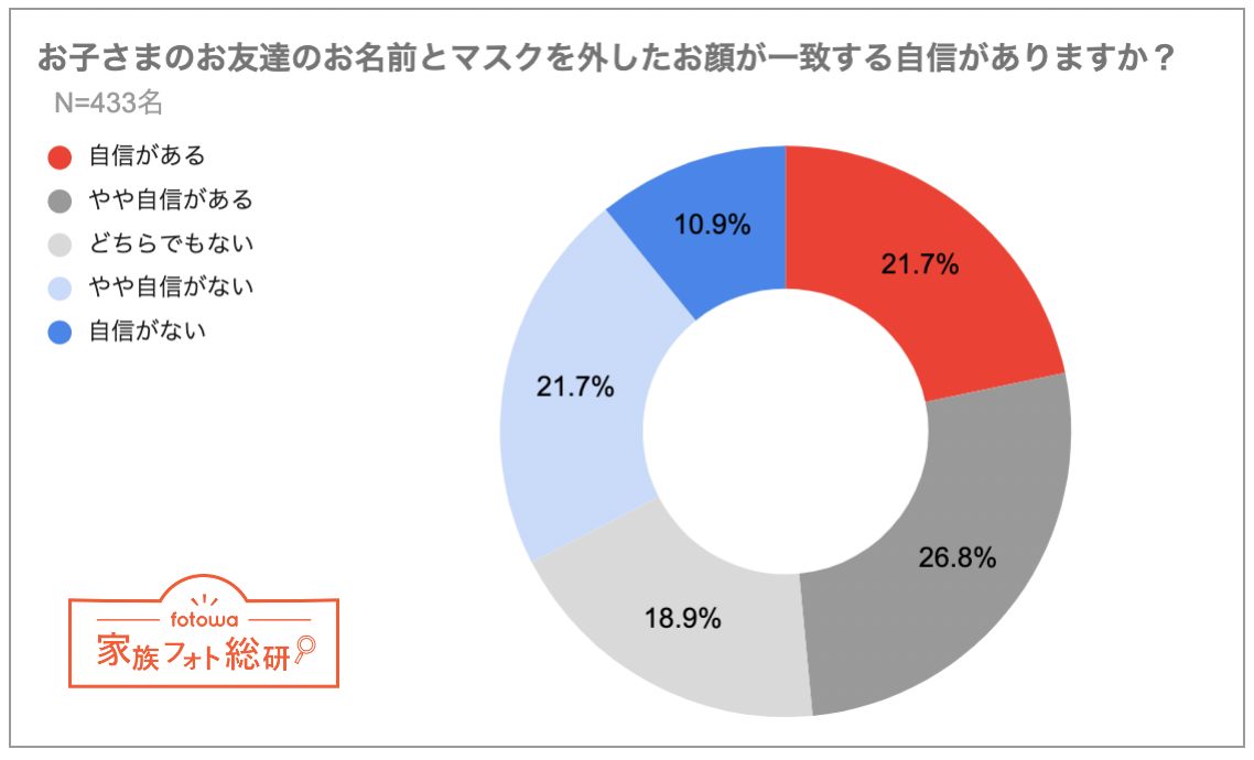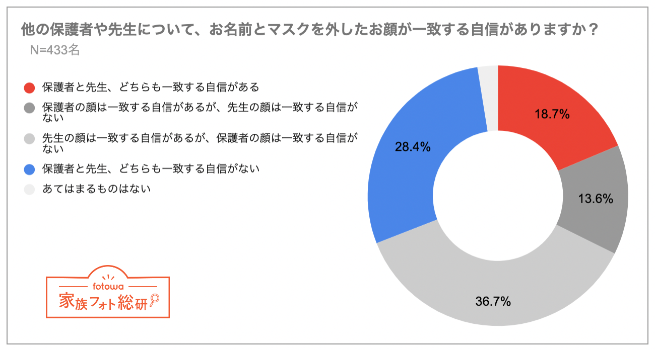 - 長期マスク生活で、約半数が「お友達」「先生や保護者」の名前と顔の一致に自信なし