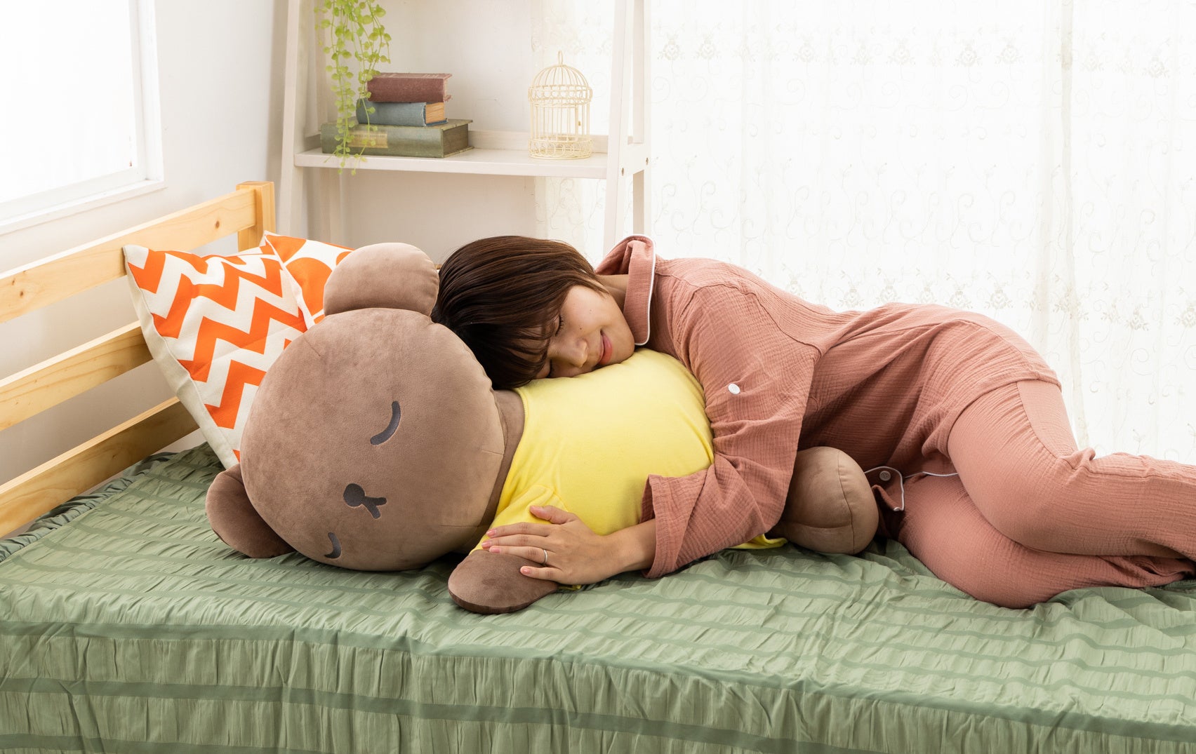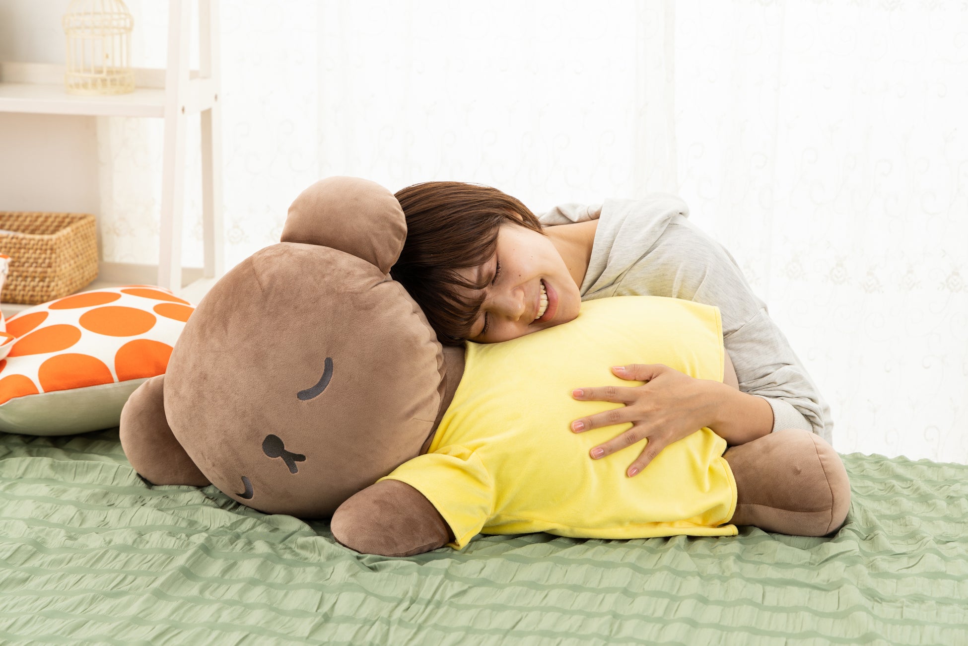 サイズが大きいからこそ、全身でその心地良さを感じることができるぬいぐるみ。よく使う場所に置いて優しく見守ってもらったり、膝の上に置いて一緒に仕事をしたり、休憩時間に抱きしめて癒しをもらったり…。