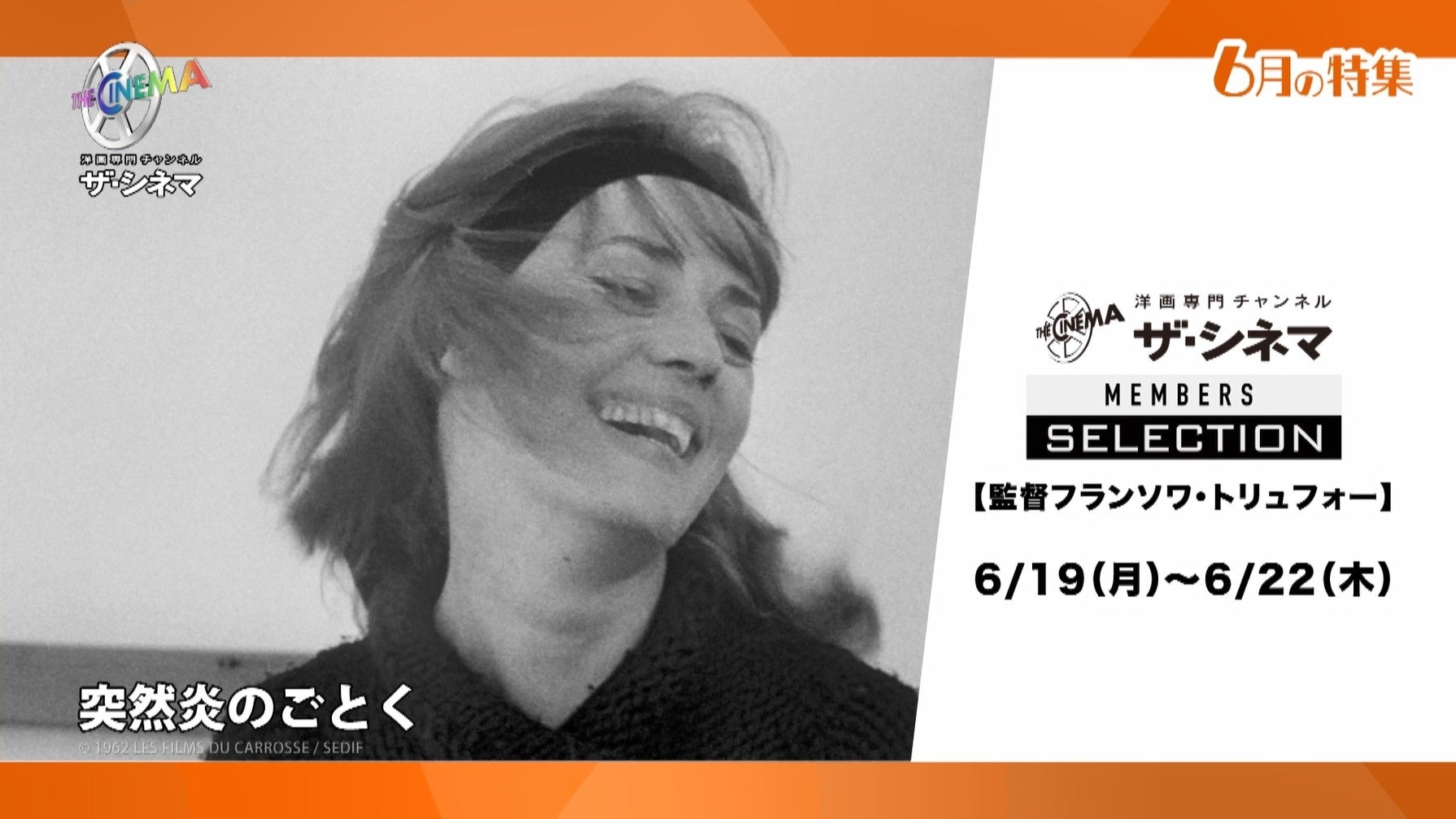 洋画専門チャンネルザ・シネマ(AXN株式会社、本社:東京都渋谷区、取締役社長 大園天樹)では、ザ・シネマ メンバーズがセレクトした上質な映画を特集する【ザ・シネマ メンバーズ セレクション】にて、ヌーヴェル・ヴァーグの旗手であり、フランス映画を代表する名匠として数々の作品を遺したフランソワ・トリュフォーを特集いたします。厳選した4作品を、6月19日(月)~22日(木)の期間にお届けいたします。