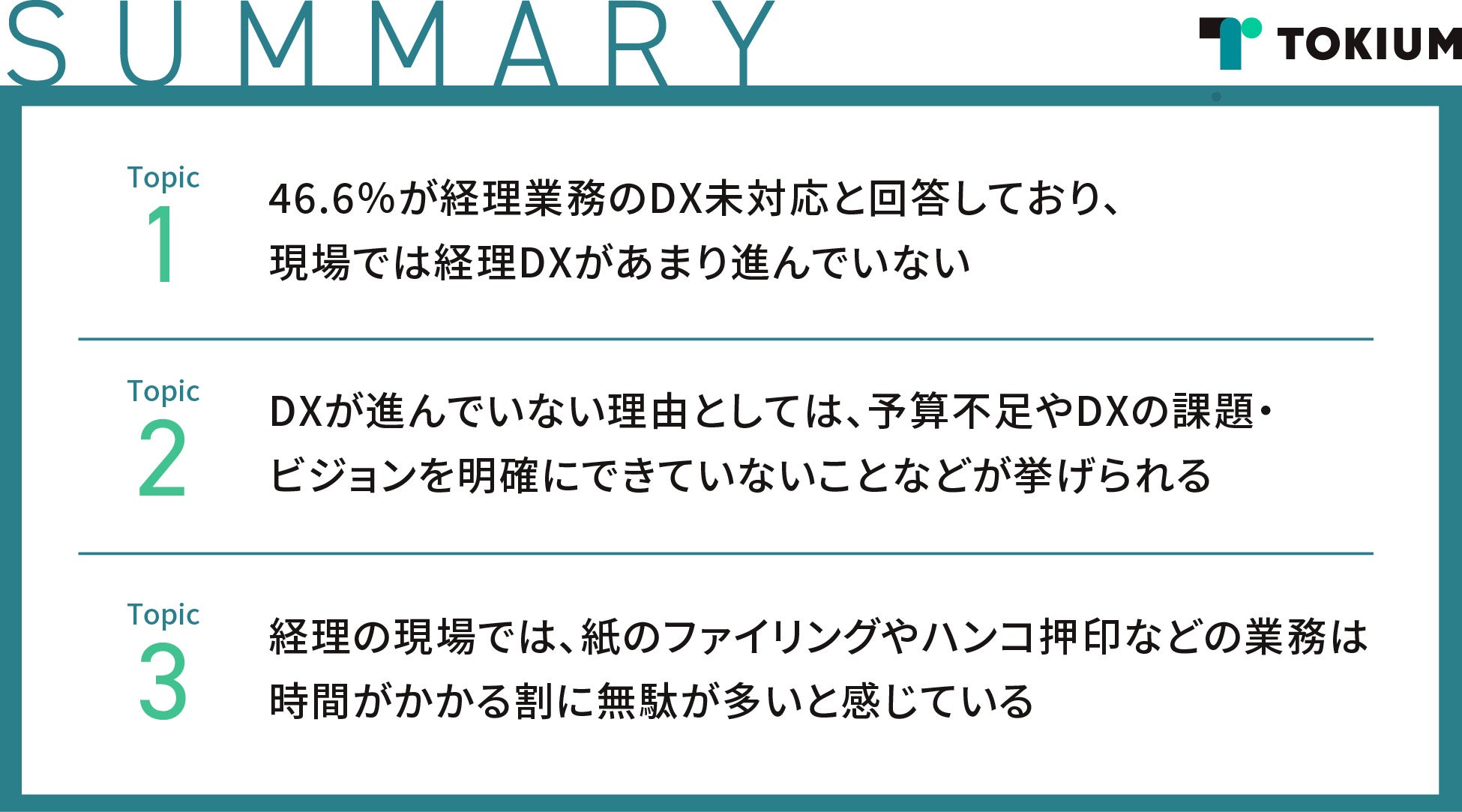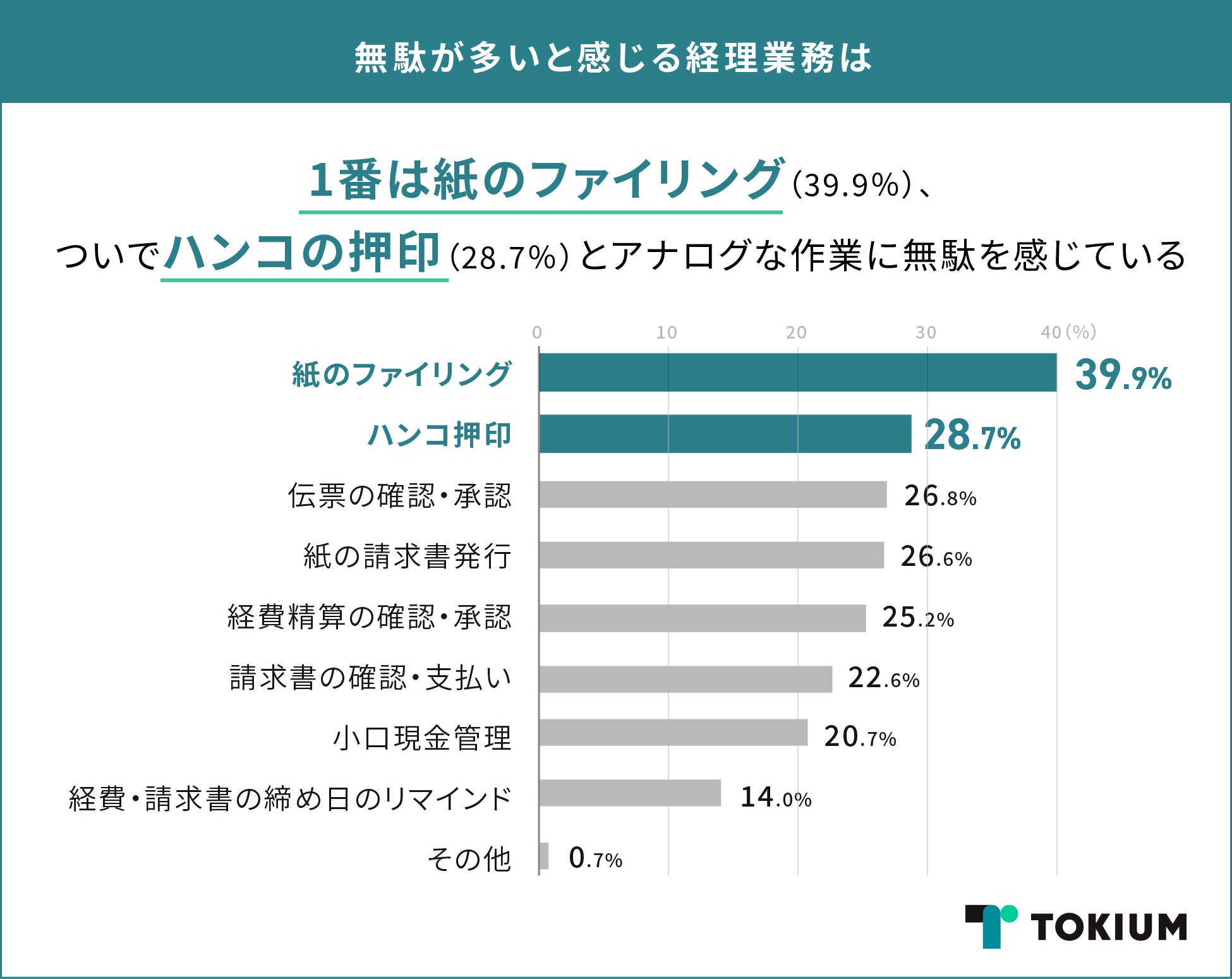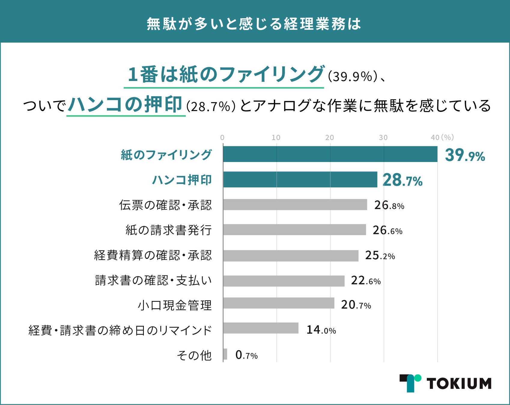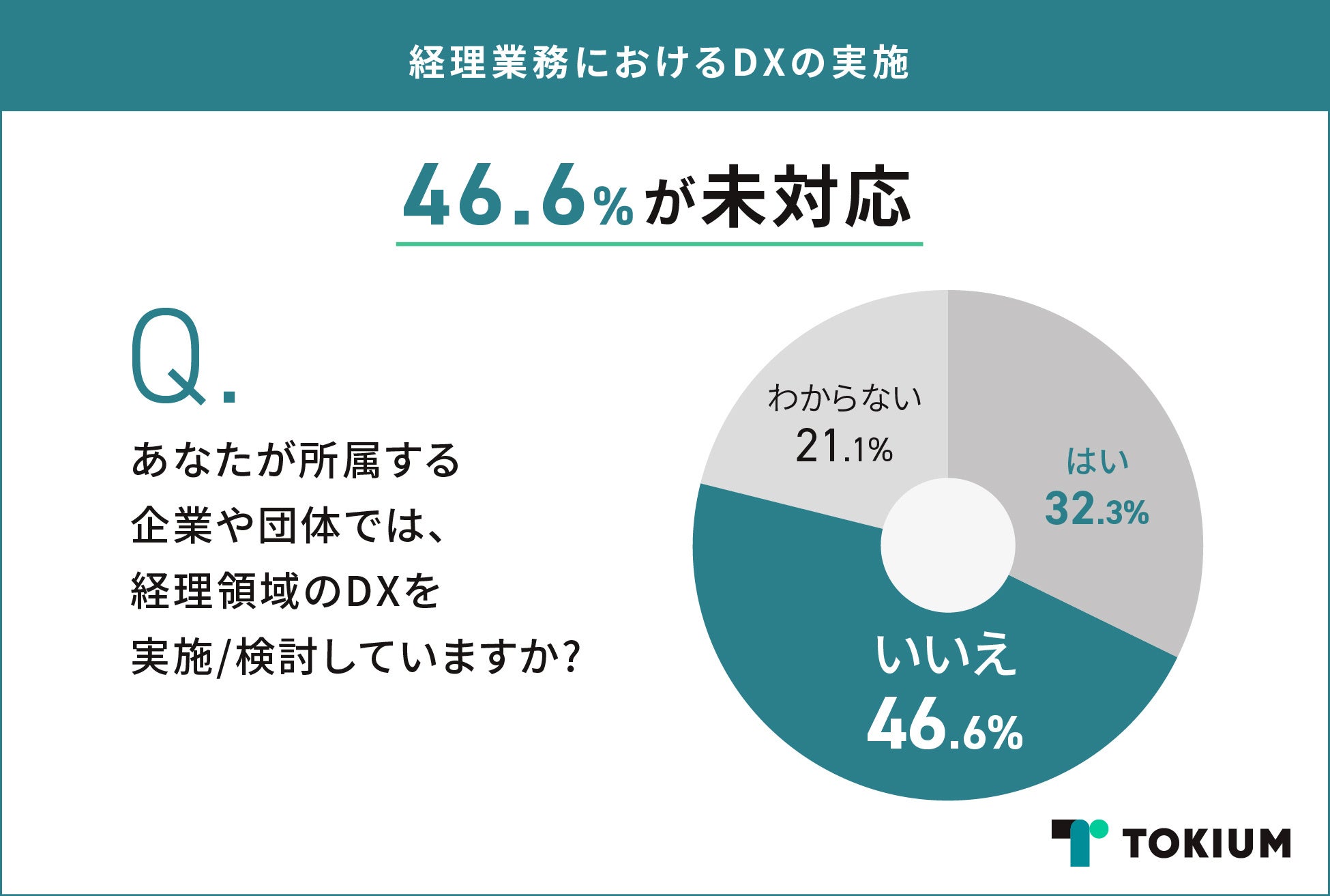 経理DXを推進する株式会社TOKIUM(本社:東京都中央区、代表取締役:黒﨑 賢一、以下「TOKIUM」)は、全国の経理業務に携わる421名を対象に、「経理業務のDX」に関する調査を行いました。