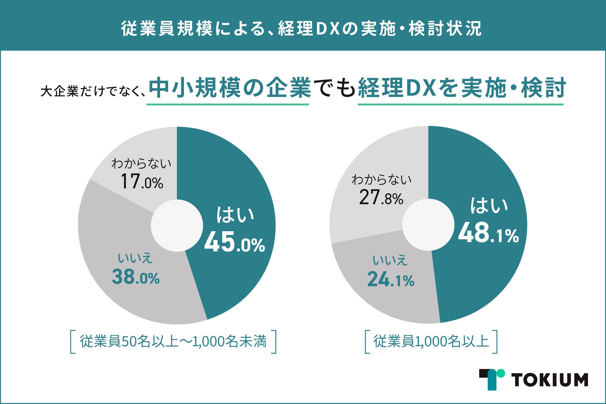 また、大企業のものだけと考えられがちなDXですが、従業員規模が50名以上であれば、経理業務のDXに関する取り組み状況は変わらないということが明らかになりました。