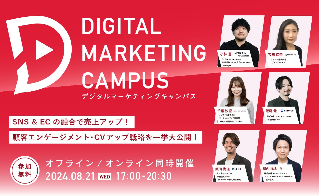 企業のコンテンツマーケティングやメディアビジネス等を支援するサムライト株式会社(本社:東京都港区、代表取締役社長:池戸 聡、以下「サムライト」)は、8月21日(水)17:00~20:30開催のマーケティングに求められる領域を川上から川下まで網羅した、オンライン・オフラインのハイブリッド型セミナー&交流会「デジタルマーケティングキャンパス」に登壇いたします。