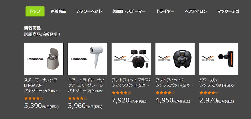 エアクロモールは、気になる商品をレンタル保証付きで、好きなだけ自宅で試してから購入を検討できる、メーカー公認の月額制レンタルモールです。レンタルで試すことにより、店頭ではなく日常生活の中で、商品の効果・使用頻度・自分に合うかが分かります。気に入った商品は、納得した上で、メーカー保証付きで新品をご購入いただけます。また購入時には、レンタル期間に応じて最大10ヶ月のレンタル料金分を販売価格から割引き、残価で購入できるため、安心してお買い物をすることができます。