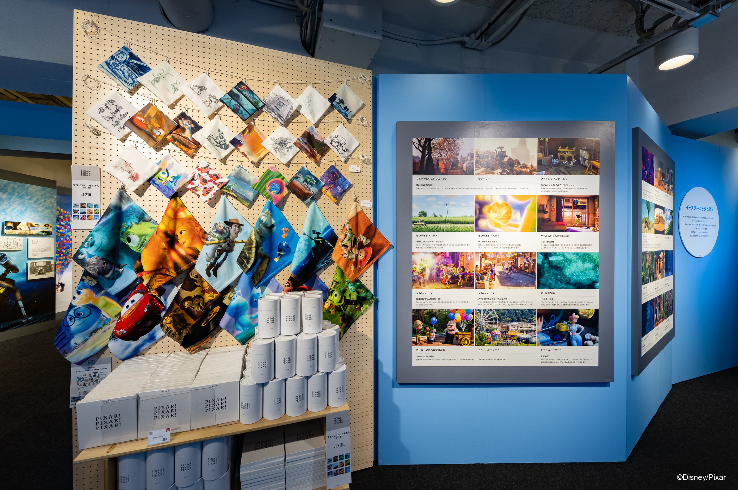 おなじみのキャラクターはもちろん、初の商品化となるアートワークを使用したグッズや最新作『バズ・ライトイヤー』のグッズなど、ここでしか手に入らないグッズを、展示を楽しみながら買うことができます。