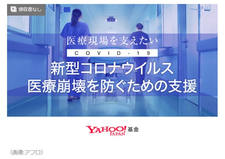 Yahoo!基金「新型コロナウイルス 医療崩壊を防ぐための支援」募金より500万円の寄付を受領