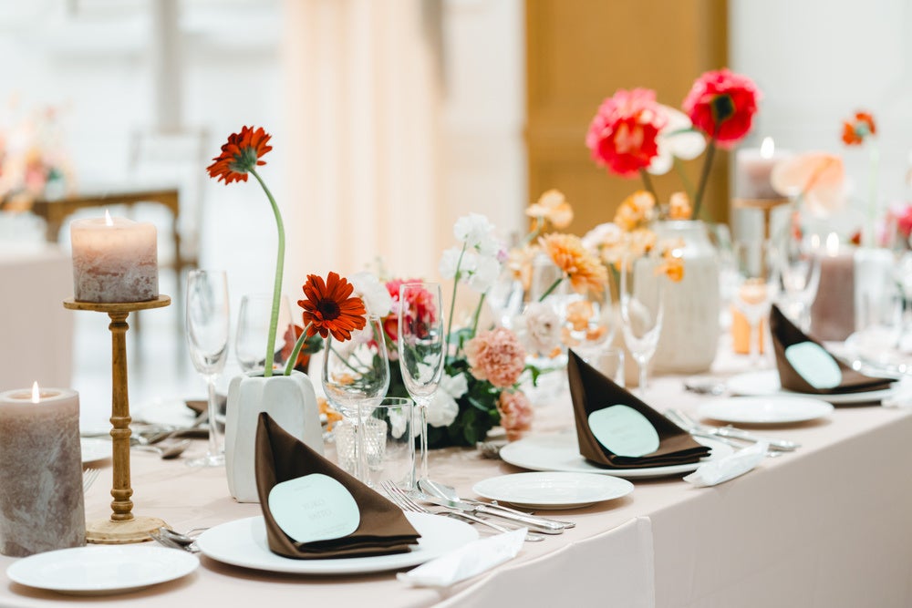 事前に着たいドレスを調べる方が増えているので、要望に合うドレスの紹介はもちろん、衣装に合わせた装飾やペーパーアイテムなど空間デザインの提案もしています。トータルコーディネートをすることで、式全体のクオリティを高めることができます。