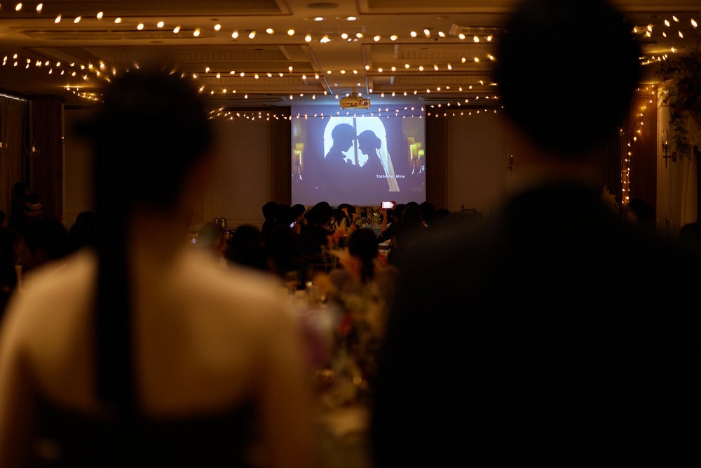 何よりもゲストを大切にしたいというおふたりを担当した際、結婚式当日が節分だったこともあり、みんなに福が舞い込むようにと“福は内”にちなんで『フクワライ』というテーマを提案。ゲスト参加型の演出や全員にスポットが当たる進行を多く取り入れ、エンドロールには皆の笑顔あふれる印象的なシーンを中心に残しました。上映後は「こんなにゲスト全員が一体になれる式は初めて」という声をたくさんいただきました。