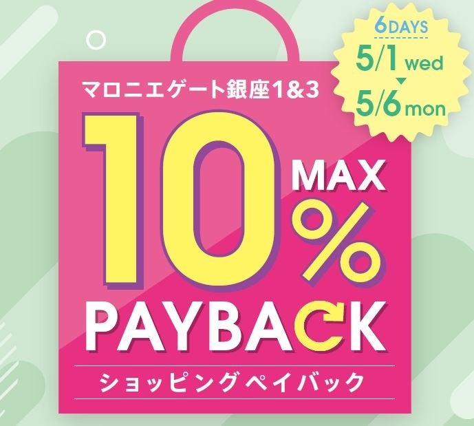 【マロニエゲート銀座1】5月1日(水)~5月6日(月)まで「最大10%還元!ショッピングペイバック」開催!
