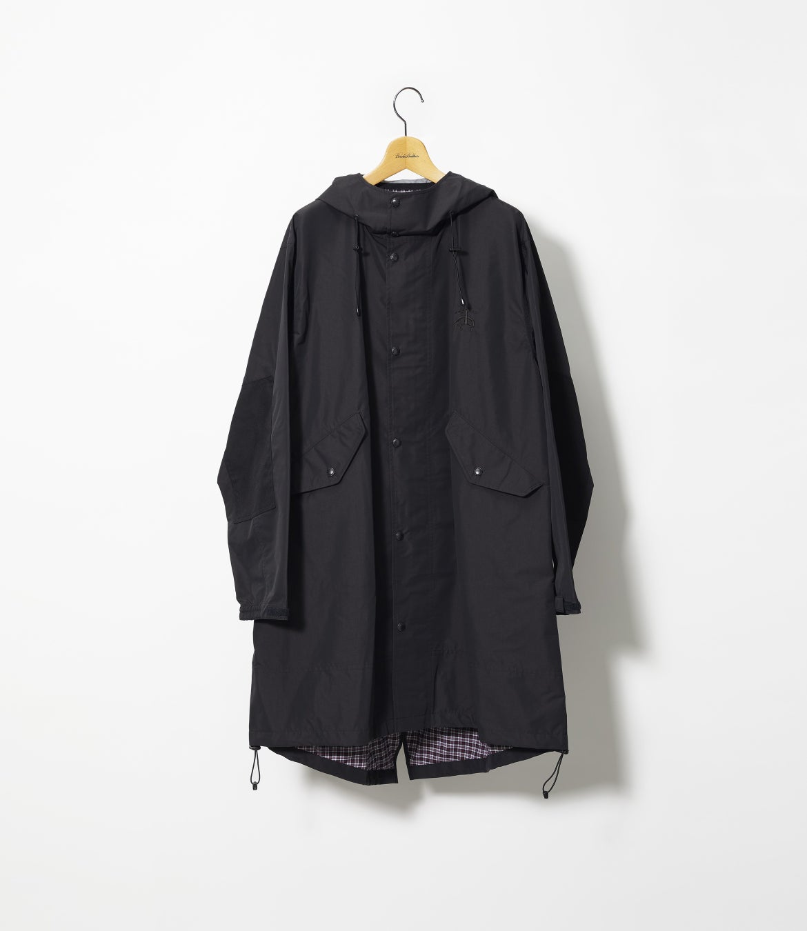 ブルックス ブラザーズの定番的アイテム、モッズコートもJUNYA WATANABE MANのオリジナルパターンで仕上げています。左胸に配したゴールデン フリース刺繍やエルボーパッチをあしらいカスタマイズ。3層ラミネート加工を施したナイロン素材を採用し、背面上部と裾にタータンチェックの裏地をあしらっているのも特徴です。