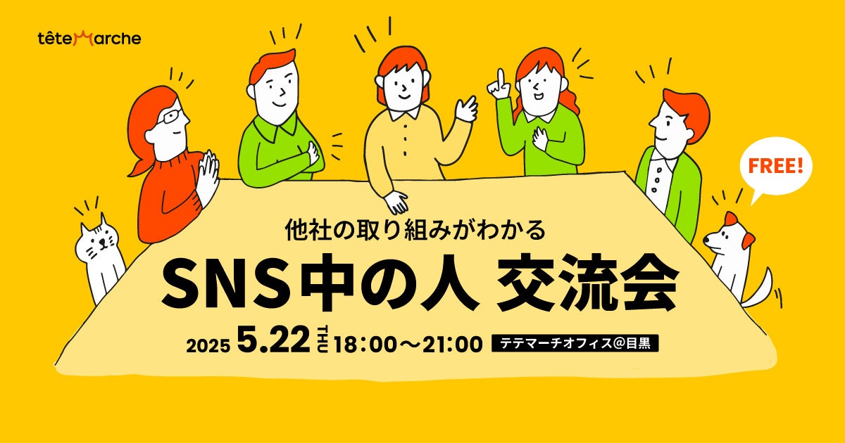 企業向けSNSマーケティング支援を中心としたビジネス展開をするテテマーチ株式会社(本社:目黒区、代表取締役:上田 大介)は、2025年5月22日(木)に企業のSNS担当者・通称「中の人」を対象に親交を深めるリアルイベント「第13回 SNS中の人交流会」を開催予定です。