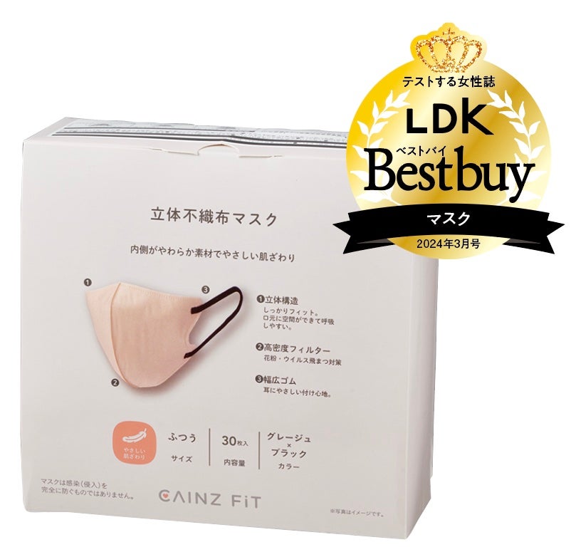 立体型マスクのカインズは、フィット性が高く、内側がやわらかな素材。ややメイクが付きますが、ガード力と使用感は超優秀。息苦しさを感じることなく花粉をガードしたいなら、このマスクで決まりです!
