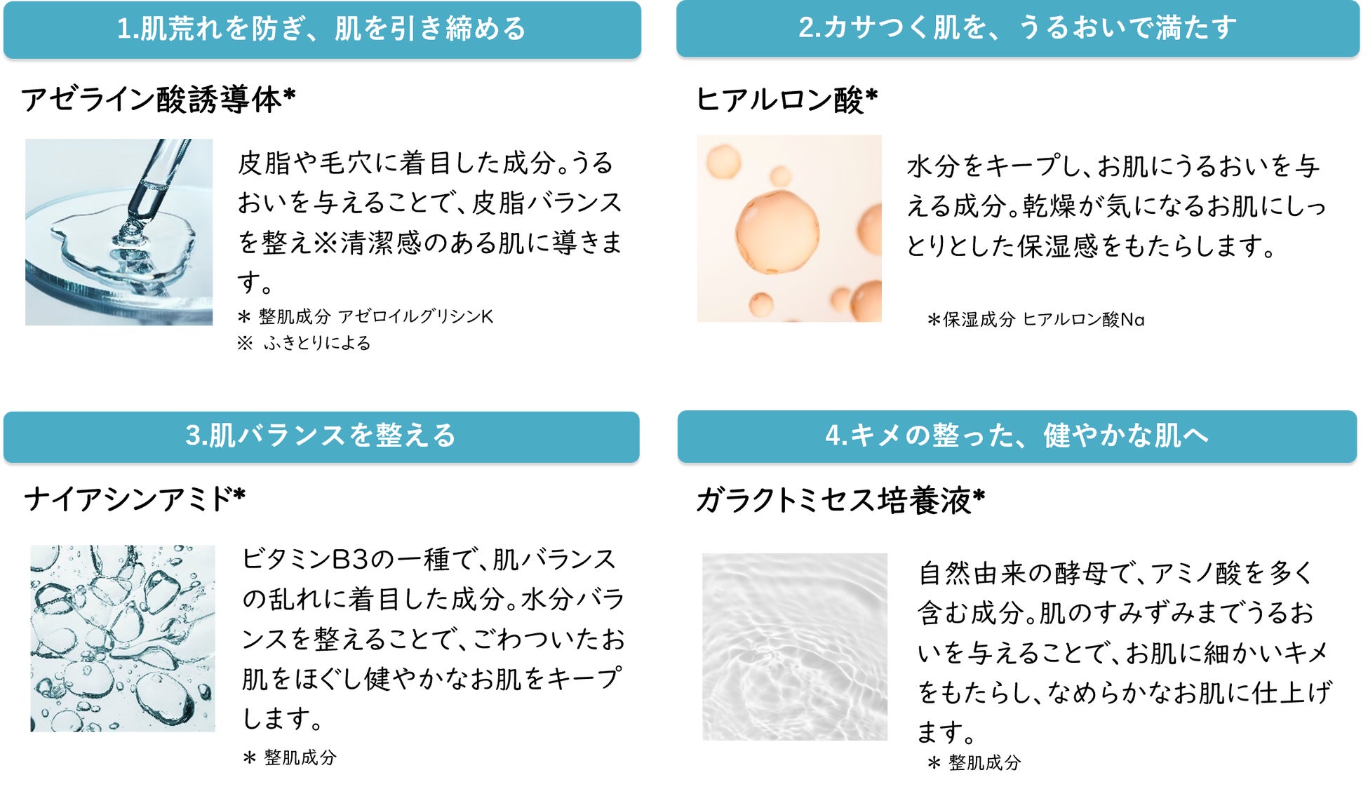 4つの肌悩みにアプローチする成分設計