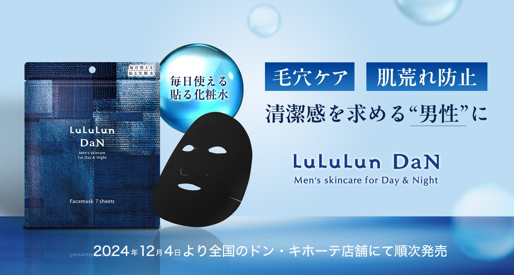 Dr.ルルルン株式会社(旧社名:株式会社グライド・エンタープライズ 所在地:東京都渋谷区 代表取締役:新岡 辰徳)は、シリーズ累計20億枚※1突破、フェイスマスクブランドNo.1※2のルルルンより、初のメンズ向けアイテムが登場します。男性の肌に寄り添うメンズフェイスマスク「ルルルン DaN ブラックマスク」は、2024年12月4日(水)より、ドン・キホーテ系列店舗限定にて順次発売いたします 。