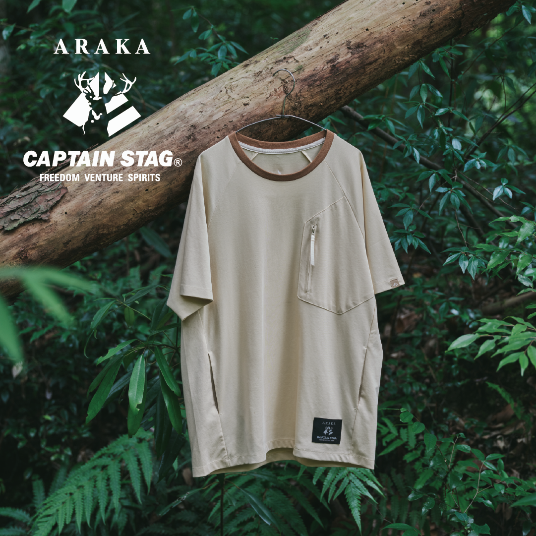 両ブランドによる初の取り組みとして共同で手掛け、今回発表するコラボレーションアイテムは、アウトドアシーンで大活躍のリクライニングチェア「ウルトラハイバックチェア」と、ARAKA×CAPTAIN STAGコラボ限定ロゴをあしらったTシャツ「ARAKA YAMAGI」の限定カラーです。
