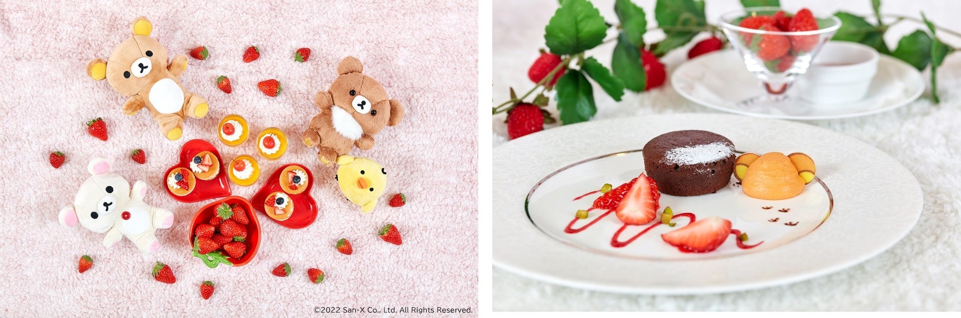 いちごのタルトやティラミスなど、いちご尽くしのスイーツはもちろん、リラックマたちがモチーフのスイーツを、パティシエがアレンジ!