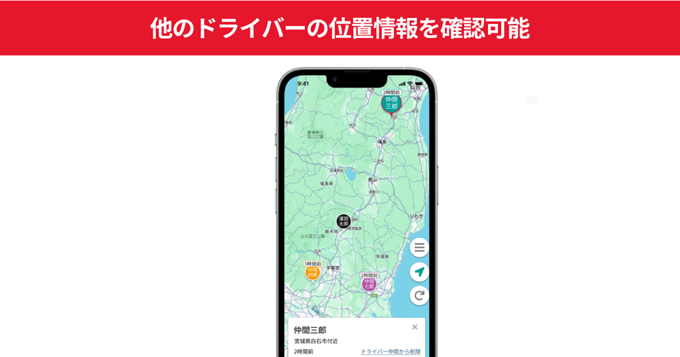 ドライバーの業務は1人で行うものではありません。交通情報の交換や輸送時の連携など、ドライバー同士でコミュニケーションをしながら進めることが多くあります。こうしたドライバー同士のコミュニケーションを後押しすべく、本機能を開発しました。