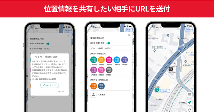 位置情報を共有したい相手に対して、URLを送り、承認されることで位置情報を伝えられる仕組みとなっています。