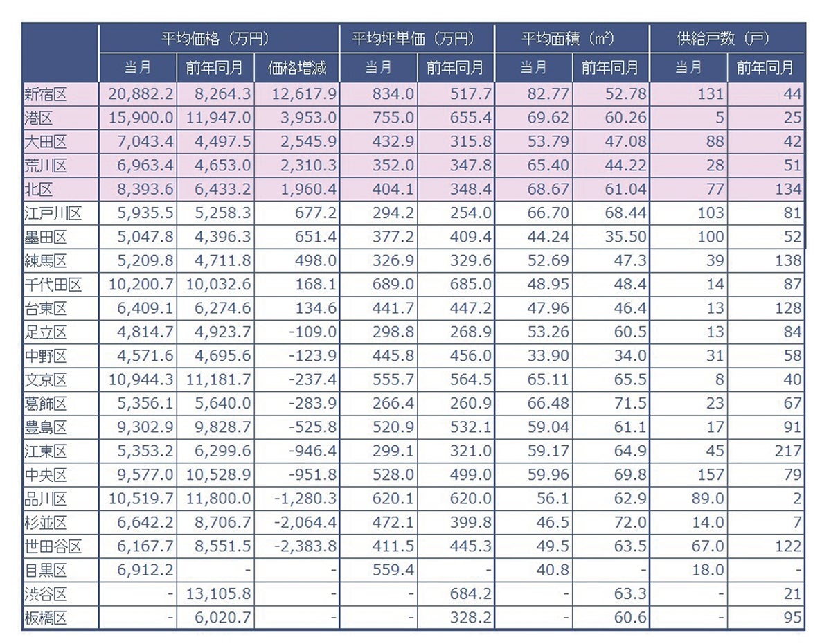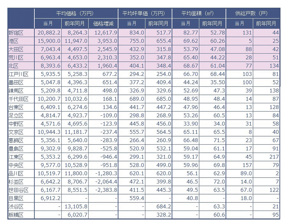 当社が調査した2023年5月の東京23区、行政区別分譲実績データ(速報値)です。