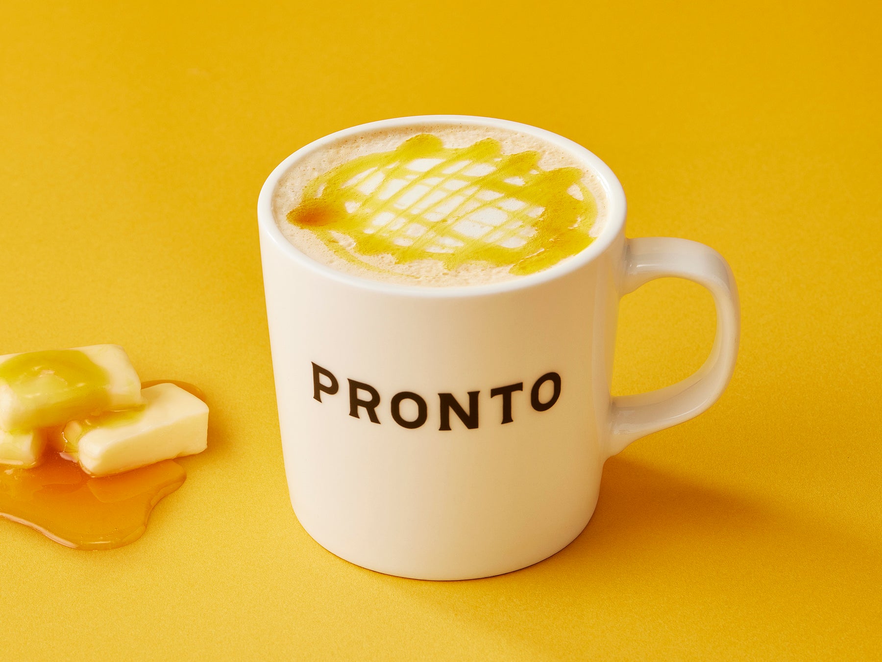 バターと砂糖を焦がし煮詰めた、まろやかでコクのあるバタースコッチソースに、プロントオリジナルのエスプレッとミルクを合わせました。トッピングのローストシュガーチップのアクセントが美味しさを引き立てる、冬におすすめの一杯です。