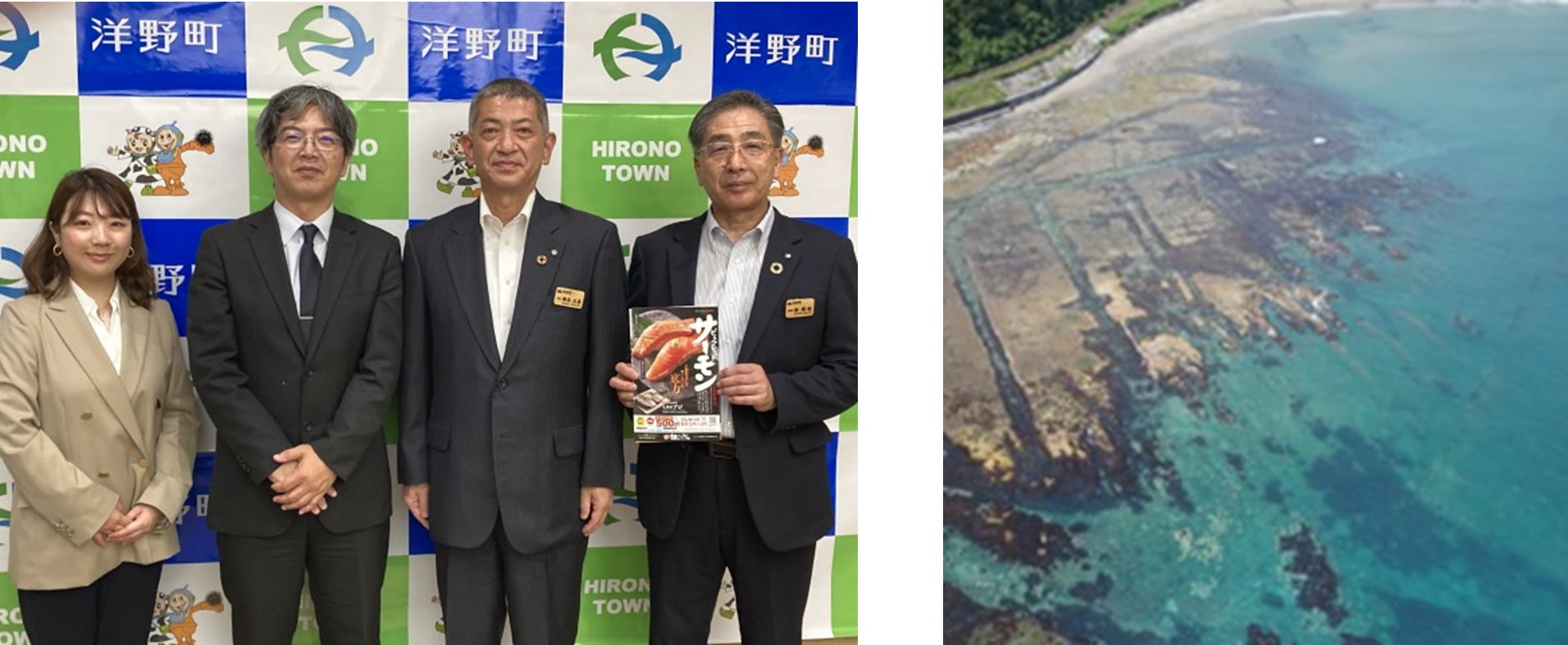 当社では、2024年7月17日に担当者が現地を訪問し、洋野町町長 岡本正善氏、同副町長 林剛敏氏から、ウニの増殖溝の歴史や、両氏の想い、洋野町のウニの魅力などについてお話を伺いました。
