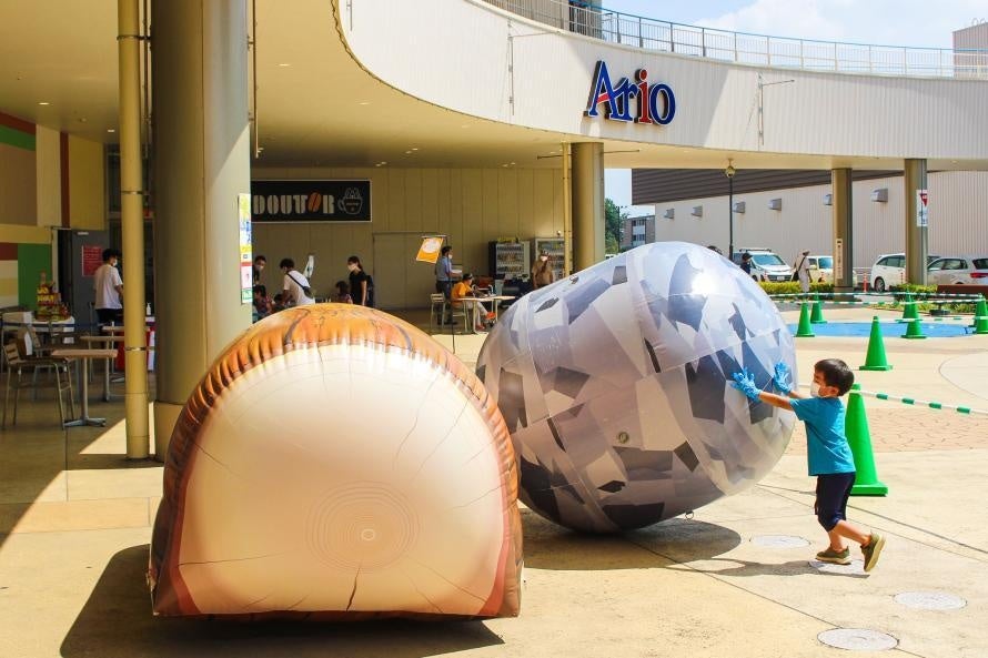 このイベントでは、おじいちゃん、おばあちゃんと一緒に、水蒸気でできた煙の中を歩いて火事を体験する「スモーキー迷路」や、がれきを模した大玉を転がしながら防災クイズを解く「がれき転がし」、会場内に設置された防災クイズのパネルを解いて回る「防災ウォーキングラリー」の3種を体験できます。これらの3つのコンテンツに加え、新聞紙でスリッパやお皿を作る防災アクティビティを全てクリアするとメダルがもらえます。