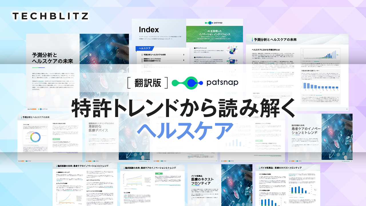 PatSnapとパートナーシップを結ぶTECHBLITZは今回、PatSnapによるインサイトをまとめた「特許トレンドから読み解くヘルスケア」レポートの日本語版をリリースいたしました。