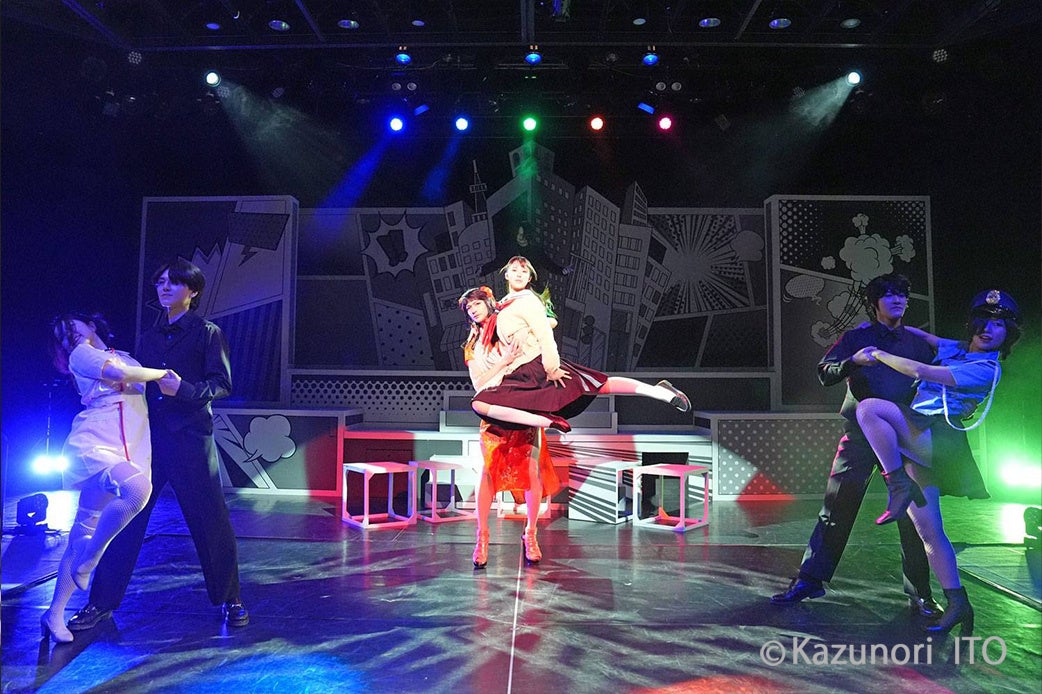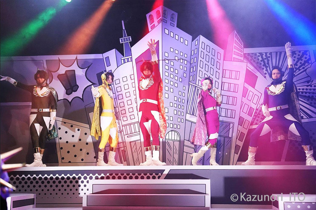 正義と悪の対立を描くだけに、バトルシーンも迫力満点だ。IMO*Tと村瀬による魂をぶつけ合うような立ち回りや、枝 尚紀、亀田結心、赤堀光希、Daniel Tomio Coelho、河野武蔵による正義マンたちの美しきフォーメーションなど、舞台の上を縦横無尽に駆け回る彼らに目を奪われる。また、30-DELUX OSAKAは重厚感ある殺陣、劇団Fierceは流れるような剣さばきと、劇団それぞれの持ち味も存分に楽しめる。