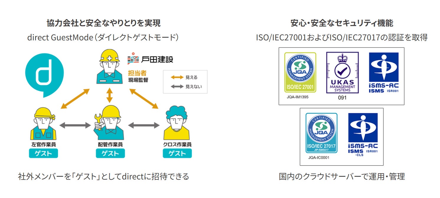 戸田建設がビジネスチャット「direct」導入決定、協力会社を含めた国内現場のコミュニケーション強化へ