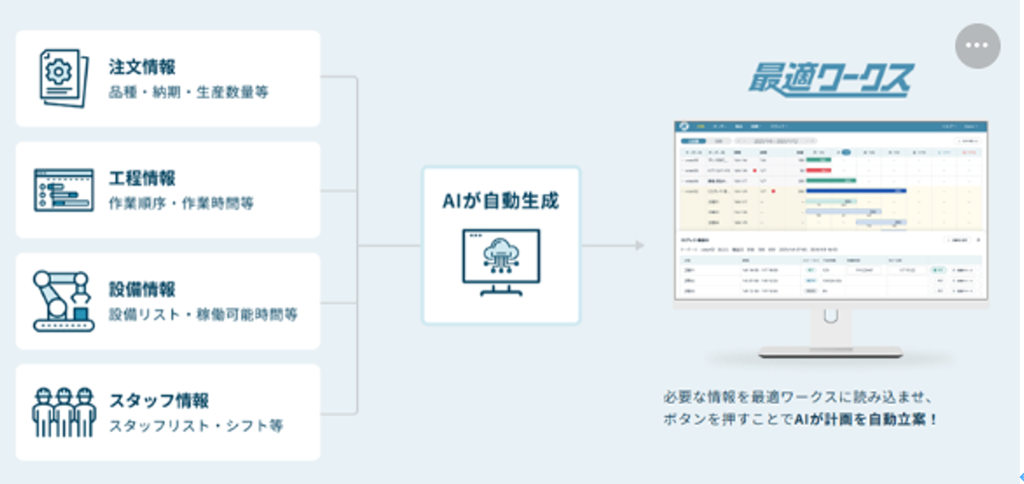 ・AIによる自動生産計画立案 最新アップデートを搭載した「最適ワークス」をデモ形式で体験できます。