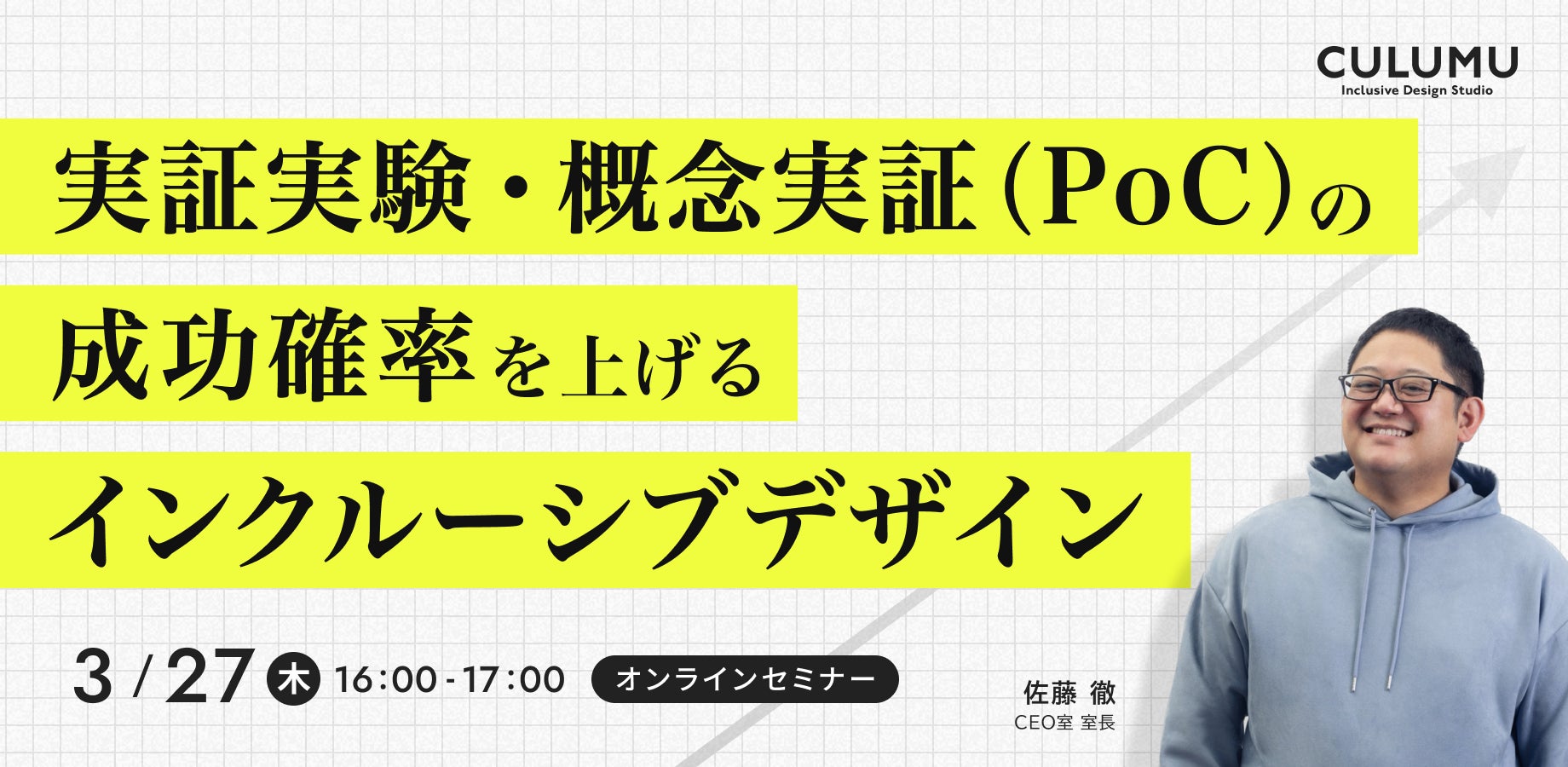 株式会社STYZ(東京都渋谷区、田中辰也 代表取締役社長)は、当社内で運営するインクルーシブデザインスタジオCULUMU主催のオンラインセミナーを2025年3月27日(木)16時から開催します。