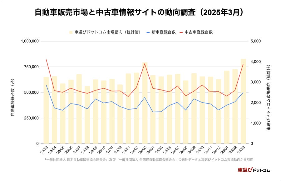 株式会社ファブリカホールディングス(本社:東京都港区、代表取締役社長CEO:谷口政人)の完全子会社、株式会社ファブリカコミュニケーションズ(本社所在地:愛知県名古屋市中区、代表取締役社⻑CEO:⾕⼝ 政⼈)が運営する中古⾞情報サイト「⾞選びドットコム(https://www.kurumaerabi.com/)」より、2025年3⽉における⾃動⾞登録台数の推移と、中古⾞情報サイト「⾞選びドットコム」の販売台数推移から、中古⾞市場の動きをまとめたレポートをご案内いたします。