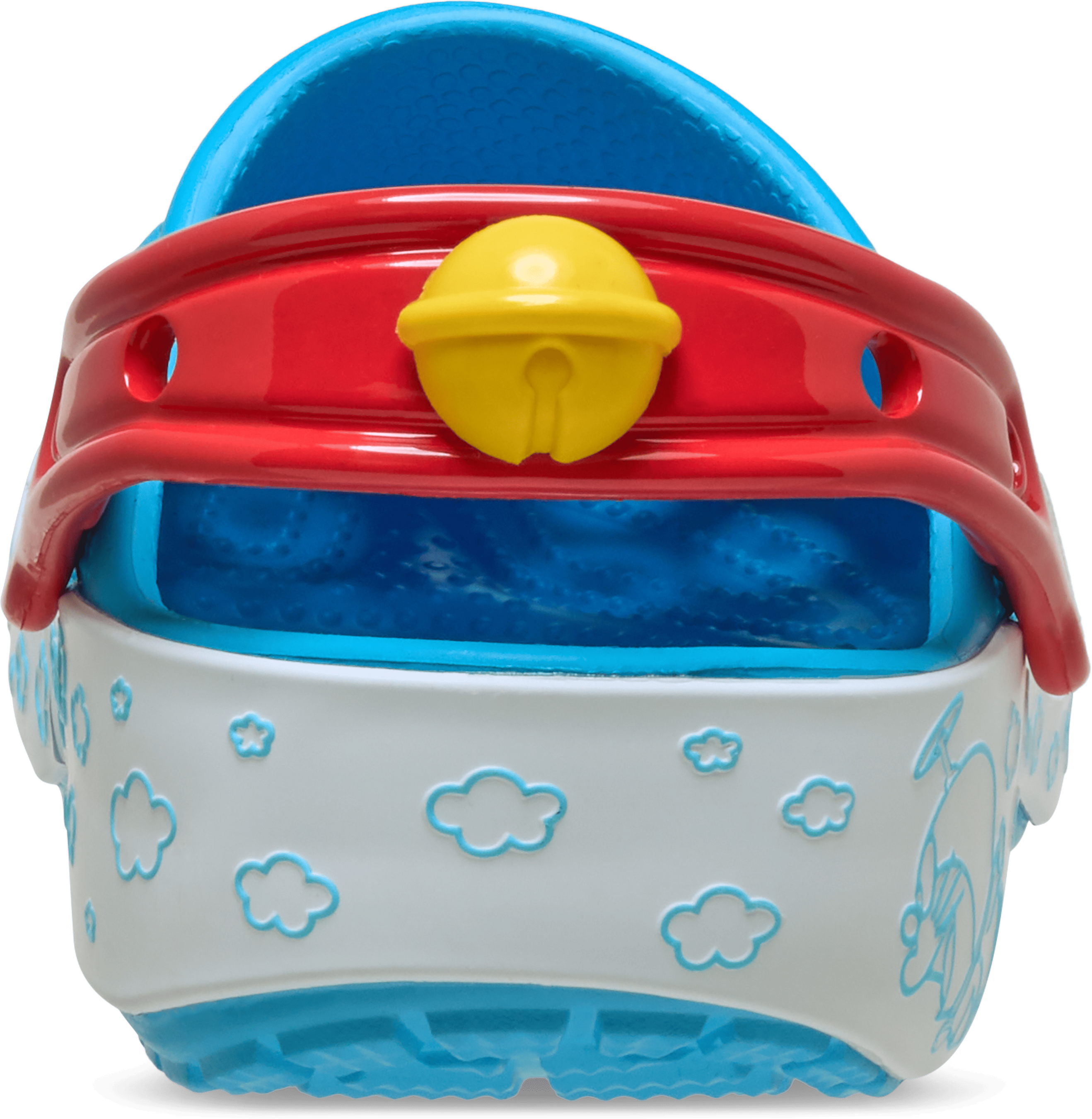 今回のコレクションでは、クラシック クロッグの大人用モデル、子供用モデルの2種類をご用意。大人も子供も楽しめます。大人用モデルのかかとには金色に輝く鈴モチーフがあしらわれ、アクセントをプラス。キッズモデルでは、ソールの側面にタケコプターで空を飛ぶドラえもんのプリントが施され、まるで足元から冒険がはじまるようなデザインに。かかとの鈴はポップなイエローで、元気いっぱいの印象を演出します。
