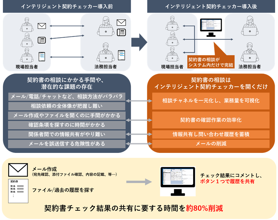 ~契約書チェック結果を素早く共有し、作業コストを最大80%削減~