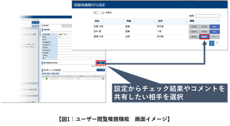 これらのリスクを軽減・回避すべく、今回、インテリジェント契約チェッカーに「ユーザー閲覧権限機能」と「コミュニケーション機能」を追加しました。