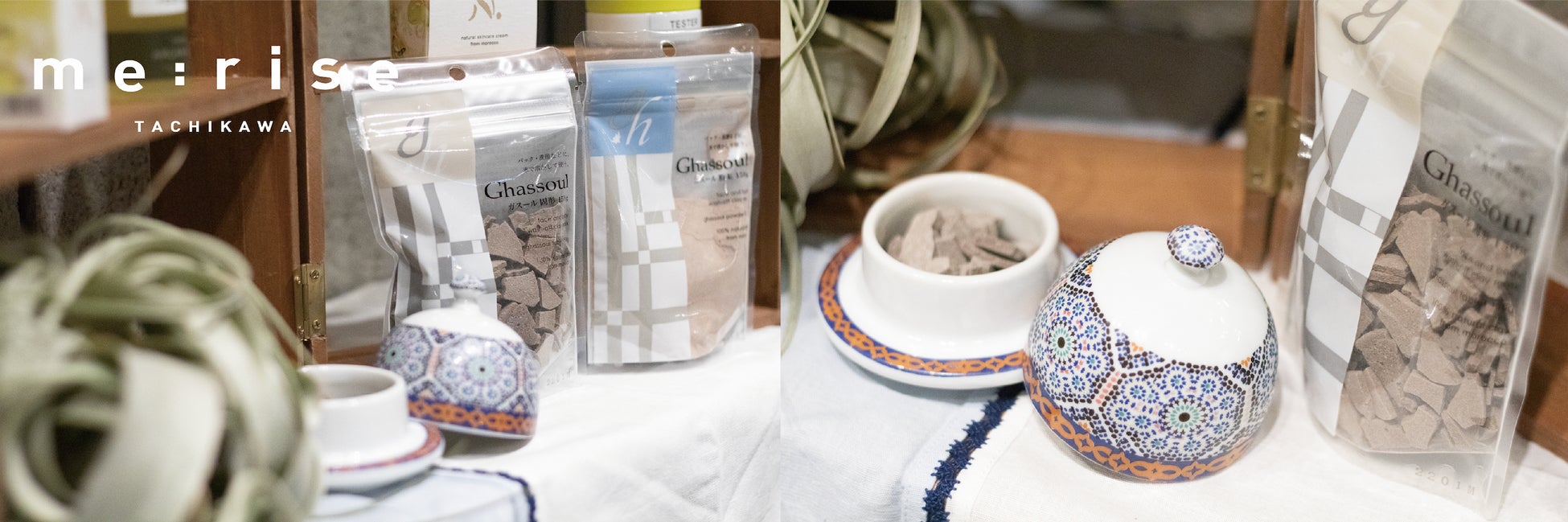 また、展示スペースには、朝摘みばら水のほか、夏にぴったりな泥製品の「ガスールパック」がずらりと展示されています。