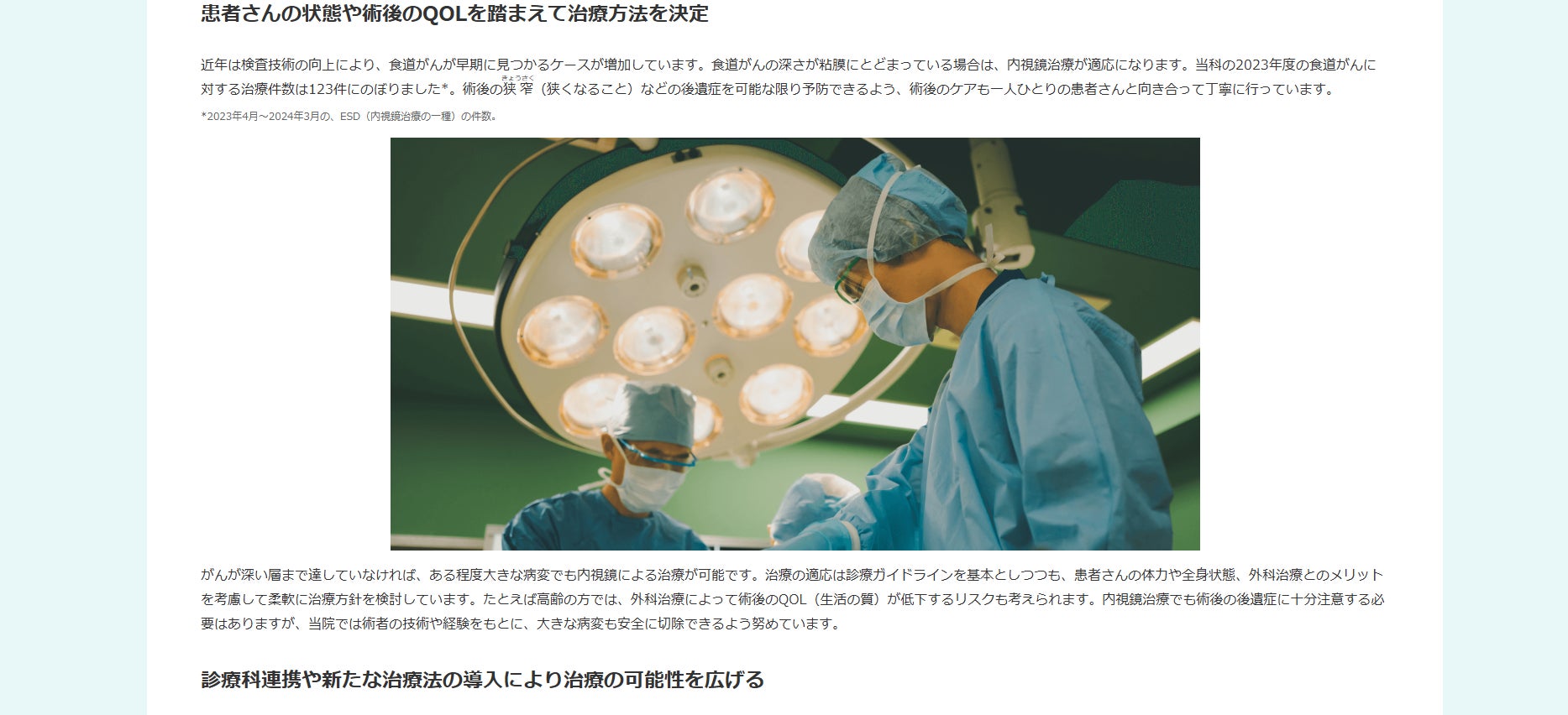 この度、がんの診療に関する情報を求める地域の患者さんに向けて、埼玉県立がんセンターの内視鏡科の情報を適切に届けるべく、メディカルノート内において特集サイトの掲載を開始いたしました。