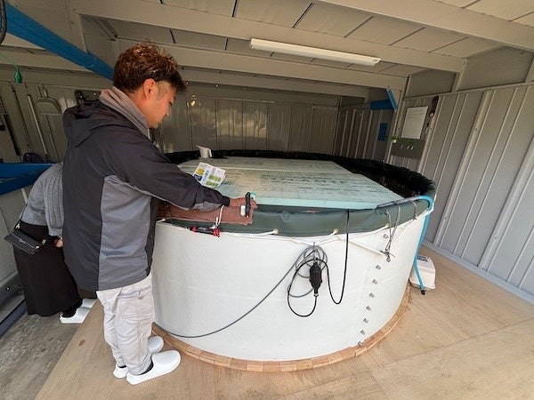 養殖事業の第一歩として、「しらす」の池入れが始まりました。