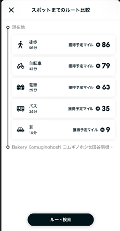 より環境負荷の少ない移動に対して、多くのマイルが付与される仕組みになっています。