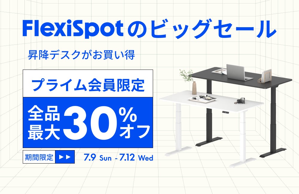 【FlexiSpot】最大30%オフのビッグセール!!「Amazonプライムデー」と「プライムデー先行セール」にて人気商品がお得に!