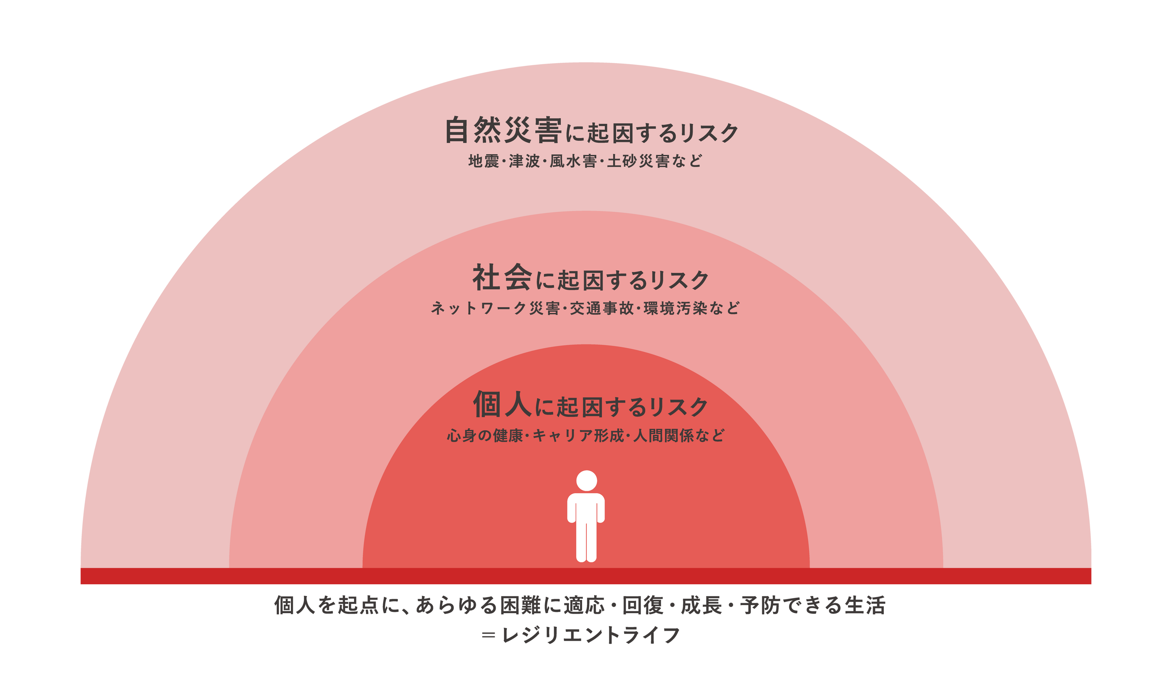 自然災害のリスクをはじめ、社会に起因するリスク、そして個人に起因するリスクに至るまで、あらゆるリスクが生み出す困難を乗り越えるための「レジリエンス」を高め、より豊かな生活の実現を目指す、新しいライフスタイルです。