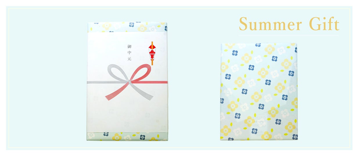 夏のご挨拶にぴったりなスイーツやギフトを多数取り揃えております。オンライン限定で、夏の包装紙もご用意しております。