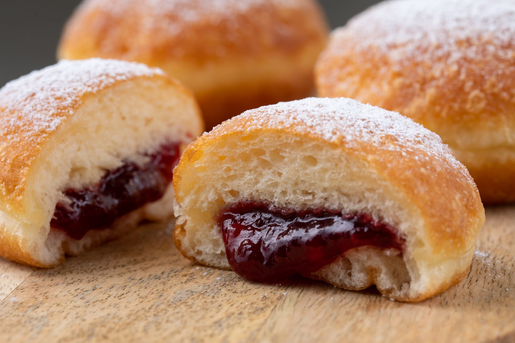 ドイツを中心に大晦日や謝肉祭などの祝祭で特に好んで食べられる「ベルリーナー プファンクーヘン」と呼ばれる揚げパンです。ふわふわで軽い口当たりが特徴で、中にはチョコレートやクリームが入っていますが、グランド ハイアット 東京では甘酸っぱいラズベリージャムを詰めました。粉雪を思わせるシュガーパウダーやほんのり甘いパン生地と、ラズベリーの酸味のハーモニーが絶妙な一品です。