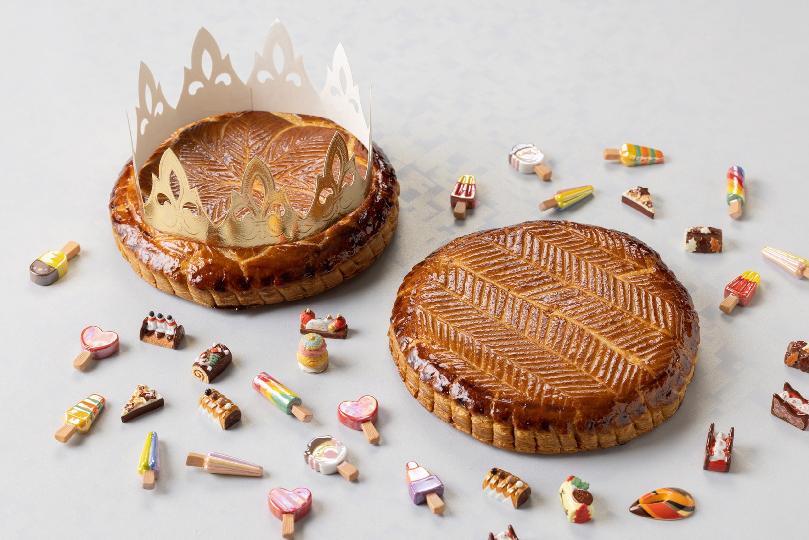 「ガレット デ ロワ」は、フランスでは新年に欠かせない 『王様のお菓子』という意味を持つフランスの伝統菓子です。アーモンドクリームがたっぷりと入った折りパイの中に、“フェーヴ”と呼ばれる陶製の小さな人形を入れて焼き上げ、1月6日のキリスト教の祭日「公現節(エピファニー)」に家族で切り分けて食べます。“フェーヴ”が当たった人は、王冠をかぶり同席者から祝福され、その年の幸運が訪れると言われる、美味しく新年の運試しができる楽しいお菓子です。グランド ハイアット 東京ではフェーヴの代わりにアーモンドを入れて焼き上げ、フェーヴは別途お渡しいたします。