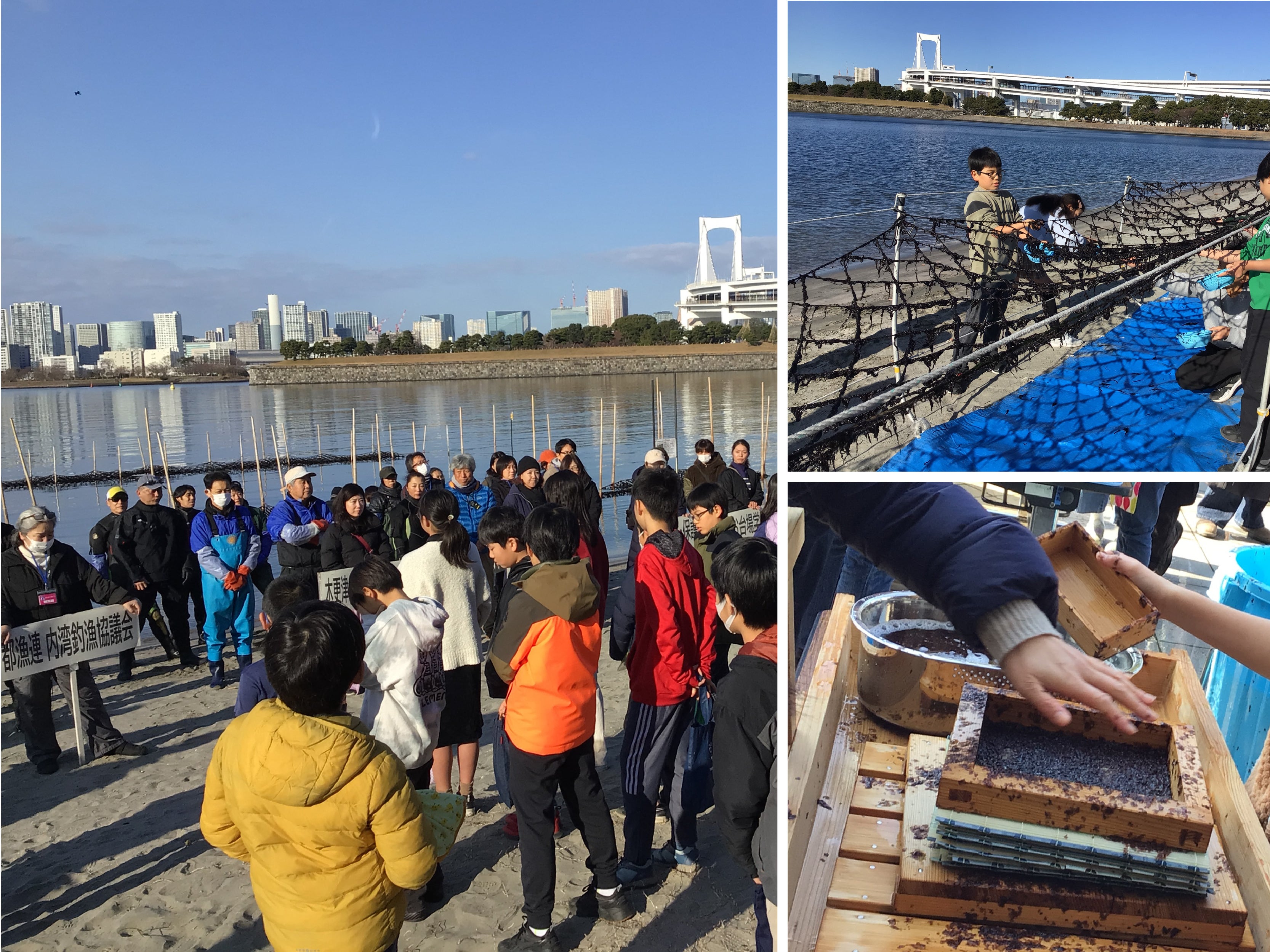 お台場学園は目の前に海が広がる都内唯一の学校です。地引き網体験や海苔づくり、ビーチバレーボールの学習など、お台場の自然環境を生かした学習が行われています。環境学習を通して子供たちの中で、「海を守りたい」という思いが育まれています。
