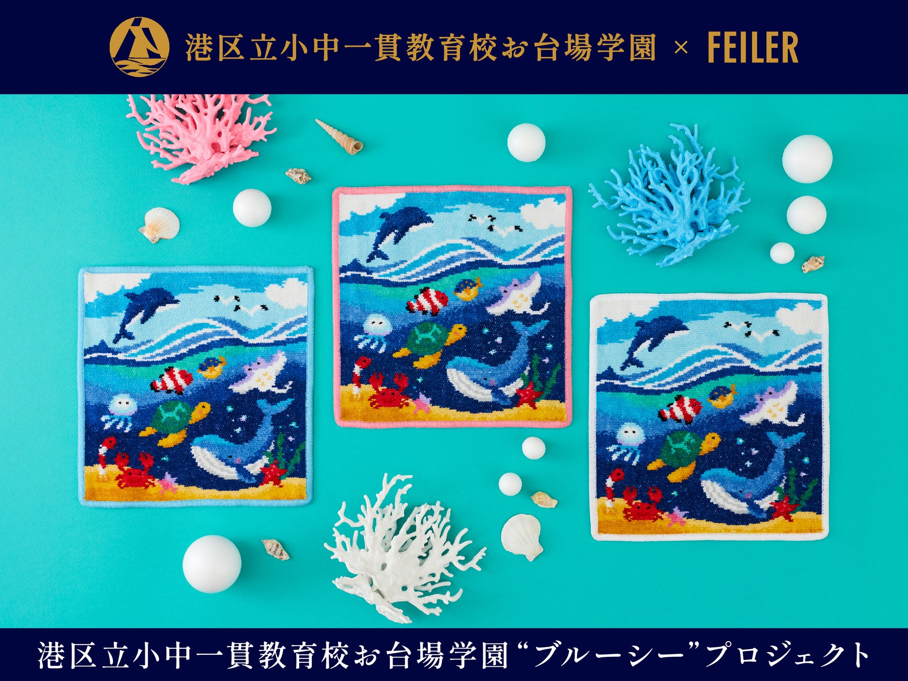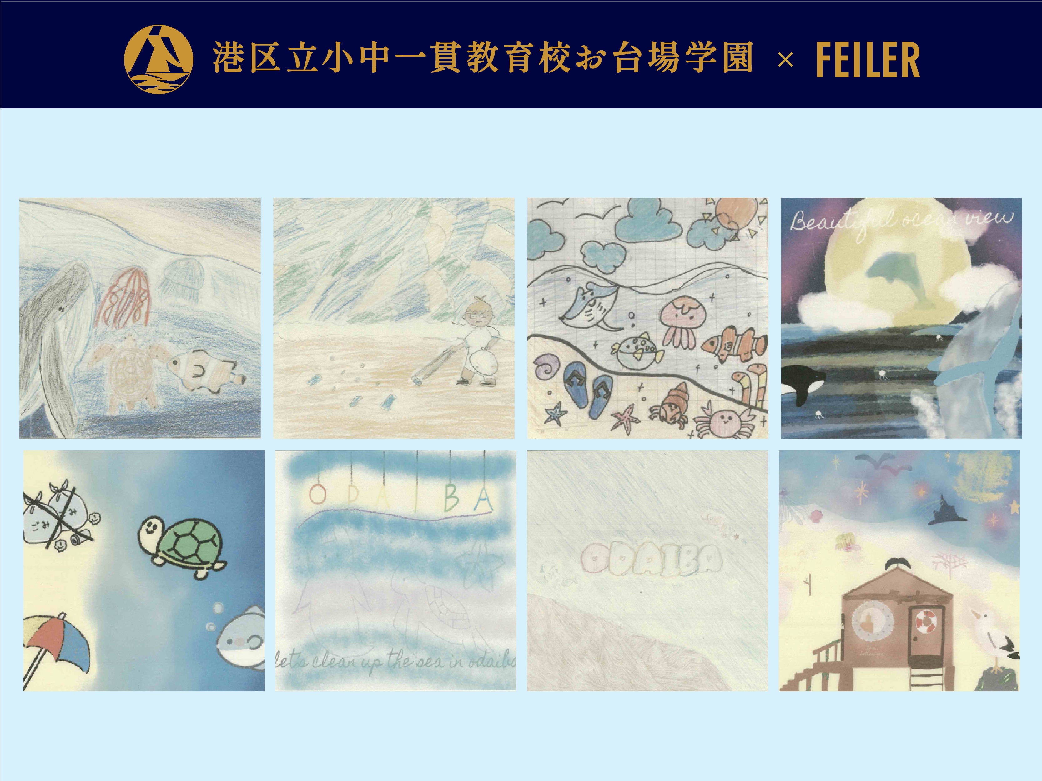 フェイラージャパン株式会社(本社:東京都渋谷区、代表取締役社長:八木直久)は、お台場の海のすぐそばに位置する港区立小中一貫教育校お台場学園の海に関する学習や特色ある学習をとおして子供たちが得た「海の環境を守る大切さ」を発信したい、という想いに共感し、2025年2月から小学6年生(当時5年生)と共創し、「FEILER(フェイラー)」のハンカチをとおして「海の環境を守る大切さ」を発信する“ブルーシー”プロジェクトを実施いたしました。