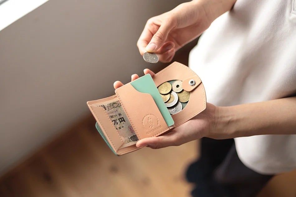 ほぼ名刺サイズ。「ミニ財布」でアウトドアを快適に。山仕事のプロに愛されたアメリカの生まれの”ハーネスレザー”で、革職人がハンドメイド。