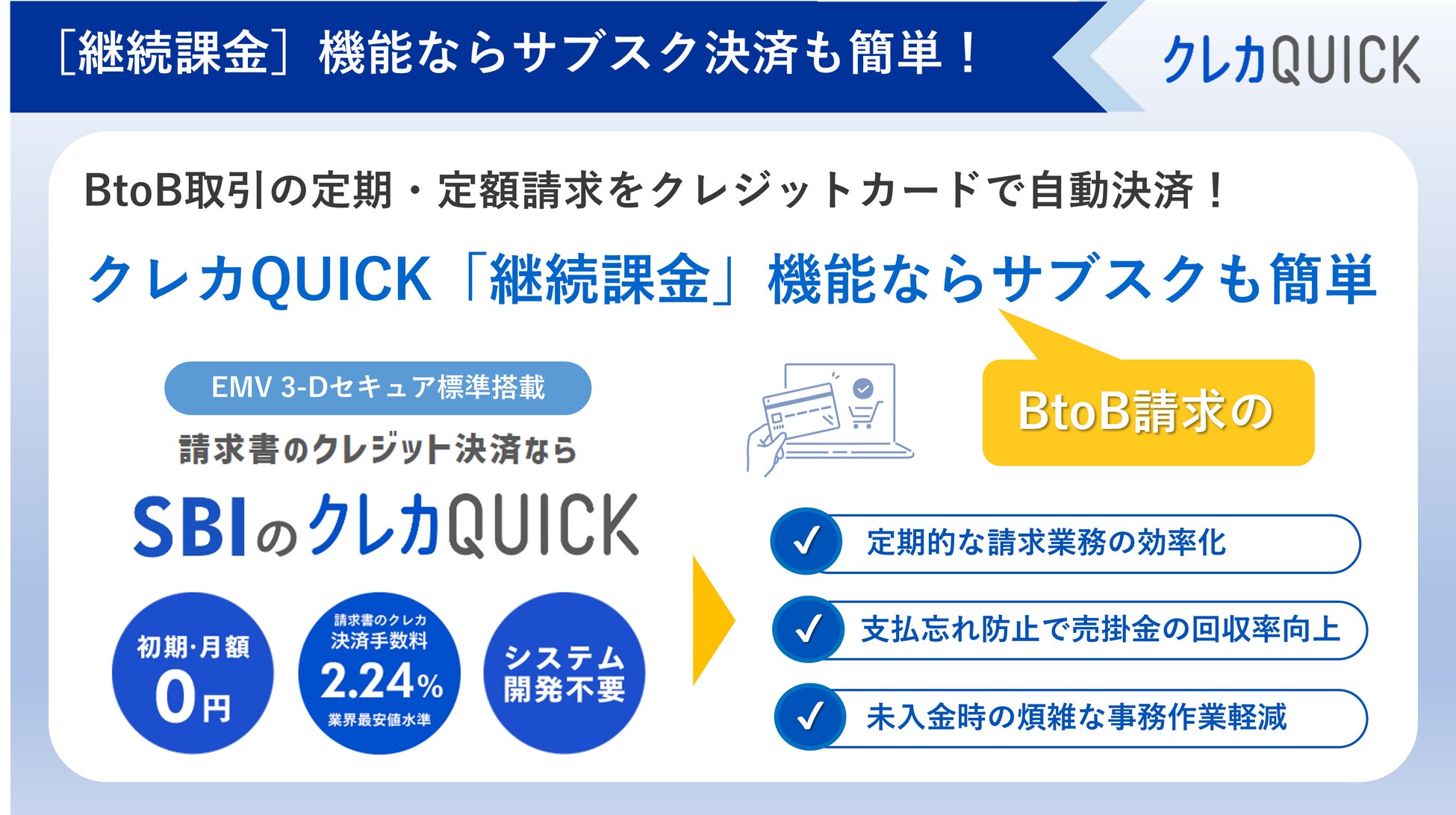 ■ 「クレカQUICK」の継続課金機能は、サブスクなど定期的な請求業務の効率化を支援